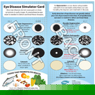 These newly redesigned cards are intended to "simulate" what vision would be like to have mild and severe cases of glaucoma, macular degeneration, diabetic retinopathy and a cataract. Simulator Cards also feature symptoms, causes, and who is at risk for each disease as well as foods that are beneficial to the eyes and a definition of an optometrist. Dimensions: 4" x 8"